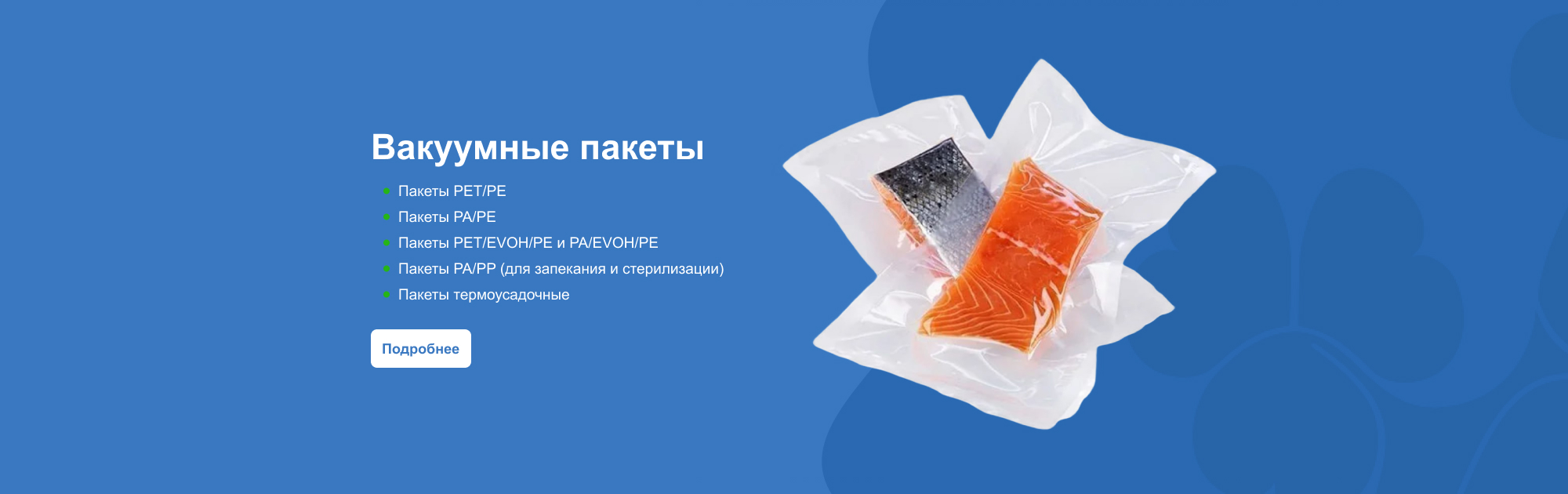 Производство пищевой упаковки — компания Клевер уже более пятнадцати лет обеспечивает Западную и Восточную Сибирь упаковочными товарами для мясоперерабатывающей промышленности. Ежемесячно мы продаем более полутора миллиона лотков, пленки и сопутствующих товаров.